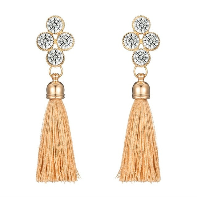 2018 New Design: Bohemia Tassel Earrings Gold Color Crystal Drop Earring...